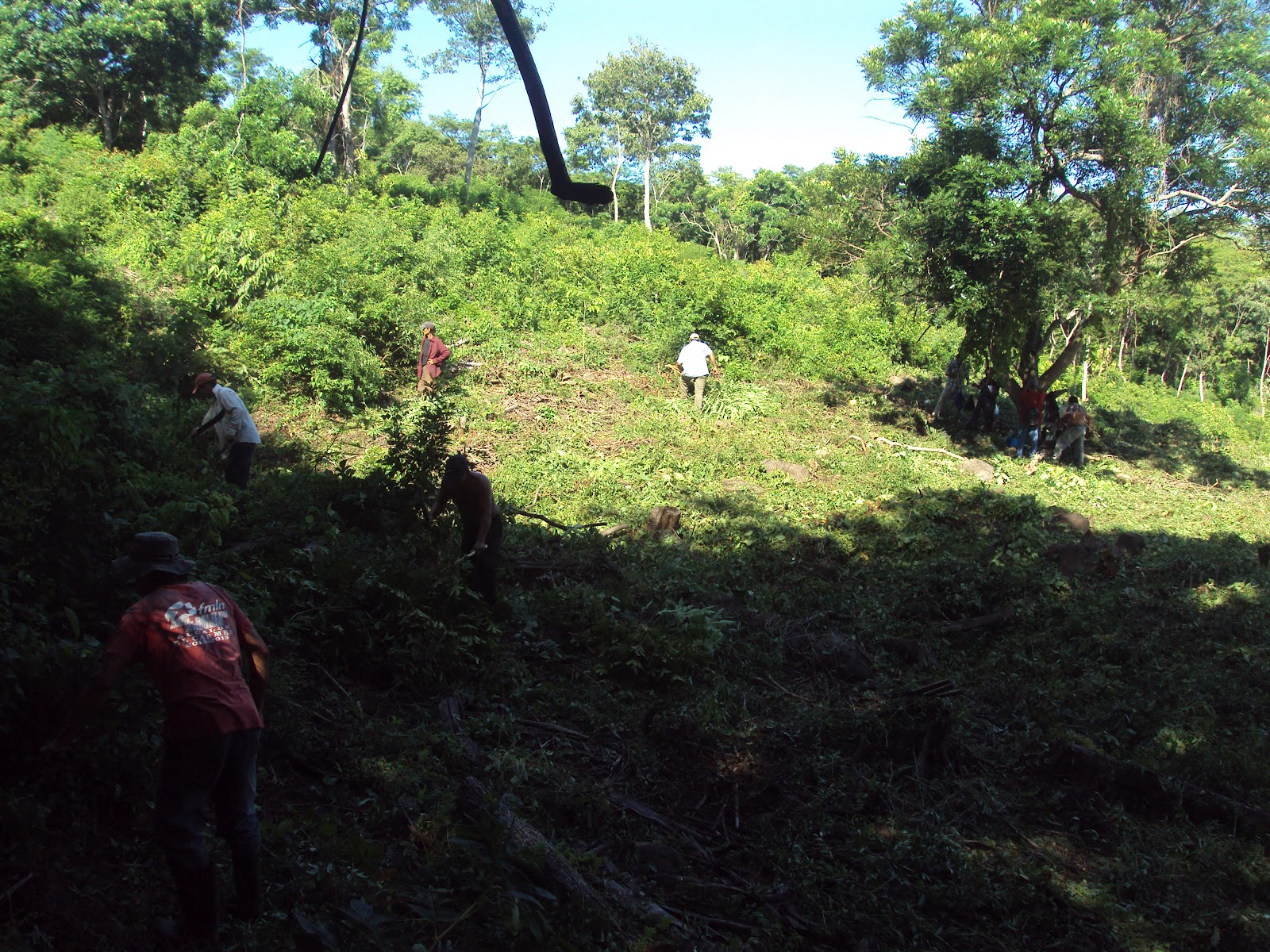 llegando a limpiar el terreno después de una hora de camino, aqui vemos un contigente de luchadores sociales trabajando para la comunidad.